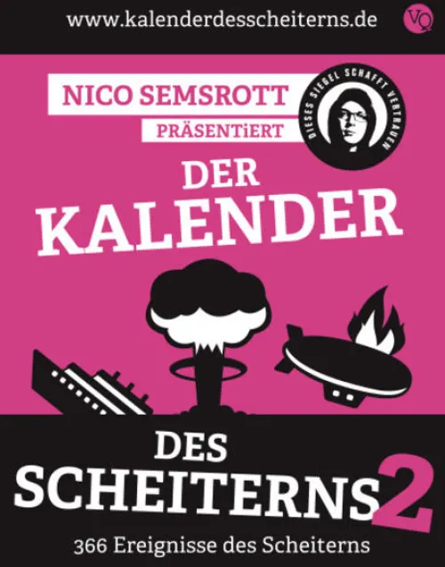 „Der Kalender des Scheiterns“ war ein voller Erfolg (!). Deswegen gibt es jetzt den Kalender des Scheiterns 2. Entstanden ist er während der ersten Hochphase von Corona als Gemeinschaftswerk von über 100 Autor*innen. Ergänzt werden die historischen Ereignisse diesmal durch persönliche Ereignisse. /Der Autor*innen-Anteil aus dem Verkauf dieses Kalenders geht komplett an Sea-Watch. /