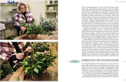 auf Highclere Castle in Hampshire. Lady Fiona Carnarvon führt Sie hinter die Kulissen der Erfolgsserie und lässt Sie teilhaben an der Adventszeit, den Vorbereitungen und den festlichen Weihnachtstagen im Schloss. Neben köstlichen Rezepten gibt sie auch Einblick in typische Traditionen, die hier noch aufrecht erhalten werden, verrät weihnachtliche Deko-Tipps und Ideen zum Geschenkeeinpacken und erzählt vom Alltag auf dem Schloss. Erfahren Sie beispielsweise, wie der sechs Meter hohe Weihnachtsbaum aufgestellt und geschmückt wird oder wie jedes Jahr ein stimmungsvoller Weihnachtsmarkt die Besucher anlockt. Freuen Sie sich mit