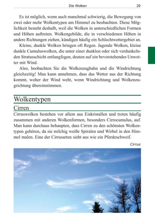 Wie entsteht Wetter? ; Die Wolken; Geografische Wetterschwankungen; Die Wettervorhersage; Die Zeichen der Natur; Hobby-Meteorologie; Glossar; Literatur; Internetlinks; Wetterregeln.