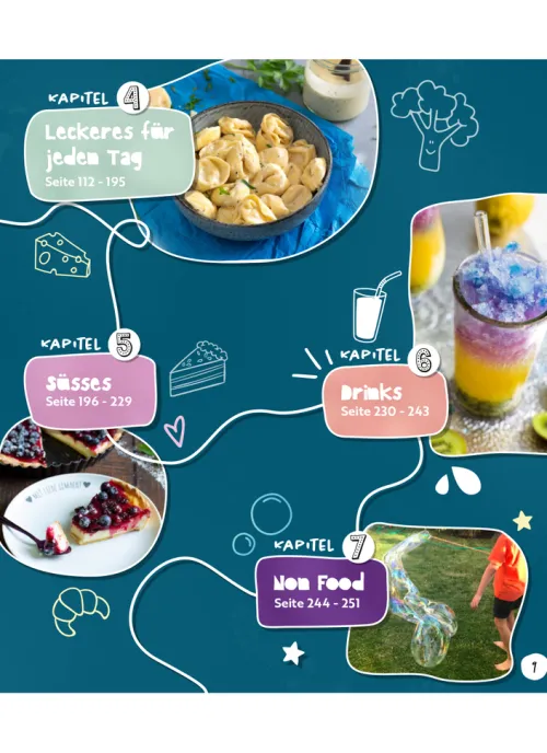 Auf über 250 Seiten findet ihr alltagstaugliche Rezepte, Tipps & Tricks, Rätsel, Malvorlagen u. v. m.