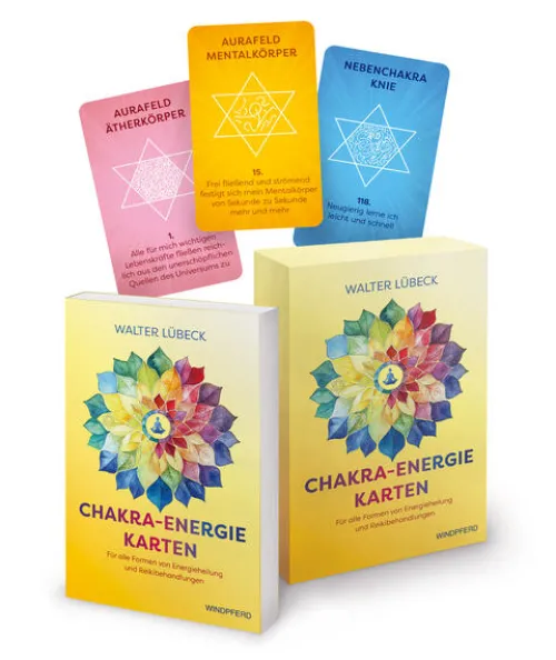 Ein EXKLUSIVES KARTENSET, liebevoll gestaltet, mit 161 hochwertigen, glänzend veredelten Karten, vierfarbigem Booklet und edler Verpackung. Die Chakra-Energie-Karten tragen heilende Worte für Körper, Seele und Geist. Jede Karte ist zudem mit einem besonderen Heilungs-Siegel versehen, das seine Botschaft direkt auf den Anwender überträgt. Die Karten lösen sanfte Heilungsprozesse aus und inspirieren auf liebevolle Weise. Die Affirmationen jeder Chakra-Energie-Karte sind im beiliegenden Handbuch von Walter Lübeck um einen hilfreichen Handlungshinweis erweitert, der beim Lösen und Freisetzen eingeschlossener Energien unterstützend wirkt. Die Wirkung jeder Chakra-Energie-Karte kann zudem mit der gezielten Anwendung von jeweils empfohlenen Heilsteinen, Duftessenzen und Bachblüten optimal ergänzt werden. Obwohl die Chakra-Energie-Karten ein in sich geschlossenes System bilden, lassen sie sich in nahezu jedes andere spirituelle System einfügen. Das Karten-Set enthält jeweils sieben heilende Affirmationen sowie ein Heilungs-Siegel für die verschiedenen Wirkungsbereiche der feinstofflichen Energiezentren von Haupt- und Nebenchakren sowie Aurafelder. Es lädt zum spielerisch-kreativen Umgang mit den Kräften des Energiekörpers ein – und unterstützt zudem jede Form von Heilungsarbeit.
