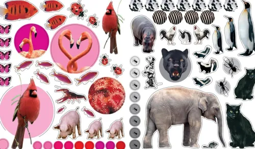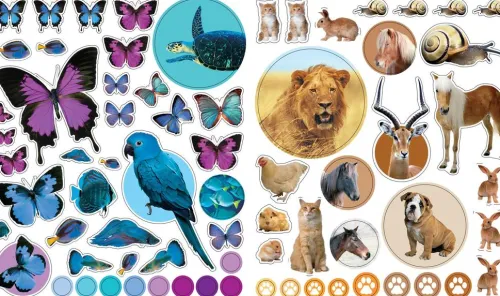 From lions and tigers to frogs and lizards, there are vibrantly colorful and photorealistic stickers for all types of animals–mammals, birds, reptiles, insects, and fish. Whether on windows, notebooks, lunch boxes, or scrapbooks, these peel-and-place stickers are perfect for creating your own work of art anytime, anywhere, and are designed to be stuck on, peeled off, and stuck on again without tearing or losing their “stick.” The books’ inside covers are glossy illustrated backgrounds on which kids can create lively and original sticker scenes―and then change them whenever they like.
