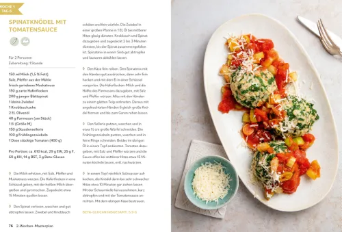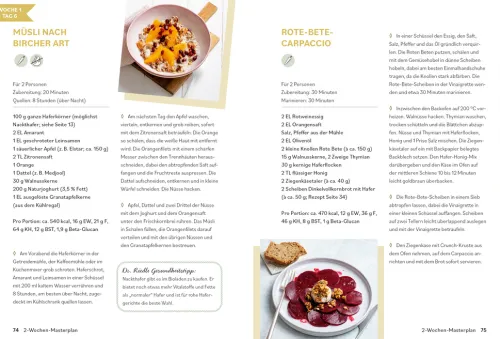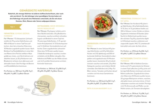 Mit Dr. Riedls 2-Wochen-Masterplan lassen sich die kleinen Nährstoffwunder ganz einfach in den Speiseplan einbauen: Drei abwechslungsreiche Mahlzeiten pro Tag machen die moderne Form der Haferkur nicht nur gesund, sondern auch lecker. Dazu gibt es Hafer-Basisrezepte, wertvolle Ernährungstipps und alles Wissenswerte rund um das Supergetreide.