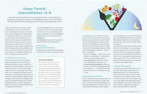 Die Ernährungs-Docs erklären, warum Essensverzicht auf Zeit ein Gewinn für die Gesundheit ist. Sie zeigen, was es mit dem aktuellen Fasten-Trend auf sich hat, und haben ein alltagstaugliches Konzept entwickelt, bei dem das bewährte intermittierende Fasten 16:8 als Schlüssel zur Selbstheilung und zum gesunden Abnehmen im Mittelpunkt steht. Jeder kann selbst festlegen, wann er innerhalb von acht Stunden seine Mahlzeiten einnimmt. Um die Esspausen gut durchzuhalten und den Körper mit allem Wichtigen zu versorgen, verraten die E-Docs ihre besten Ernährungstipps: Aus ihrer umfangreichen Rezept-Sammlung kann man sich ganz leicht das für sich passende Intervallfasten-Programm zusammenstellen. Das Resultat: Man wird gesünder und schlanker, fühlt sich frischer, wacher und konzentrierter.