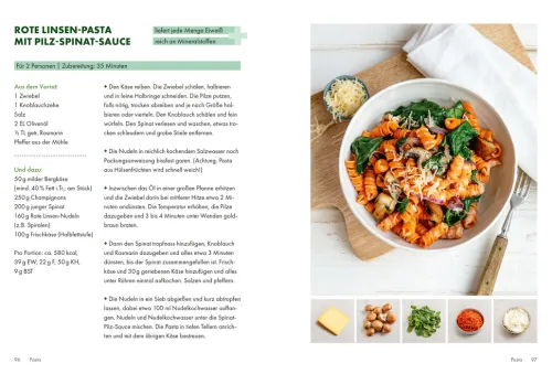 Das Erfolgsgeheimnis: kleine Schritte, die sich gut in den Alltag integrieren lassen, um ungesunde Routinen zu durchbrechen. Studien zeigen: Vorsätze wie „Ab heute esse ich nie wieder Kuchen“ sind zum Scheitern verurteilt. Stattdessen gilt es, mit kleinen Veränderungen große Effekte zu erzielen: zum Beispiel herkömmliche Pasta gegen Hülsenfrucht-Nudeln zu tauschen, auf pflanzliche statt auf tierische Proteine zu setzen oder lieber Nüsse als Süßes zu snacken. Und auch, was das Selberkochen angeht, gibt es ab jetzt keine Ausreden mehr: Denn die Ernährungs-Docs präsentieren 40 gesunde 5-Zutaten-Rezepte, die schneller auf dem Tisch stehen, als der Pizzadienst liefern kann.