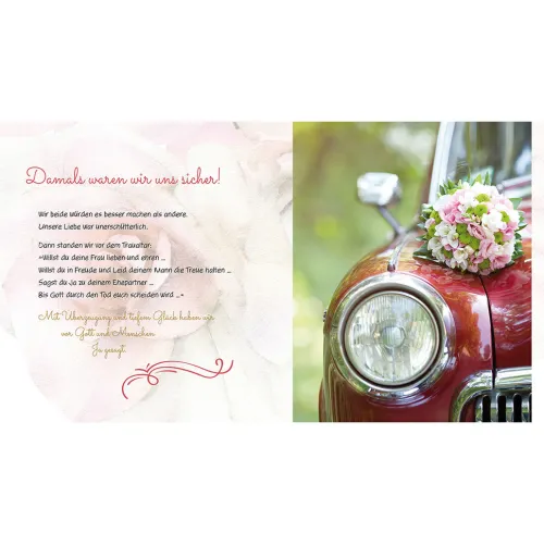 Die Botschaft des neuen Geschenkbandes zu diesem ganz besonderen Jubiläum fi ndet sich prägnant zusammengefasst im Vorwort der Autorin: »50 Jahre miteinander Freude erlebt. 50 Jahre im Schmerz einander gestützt. 50 Jahre nach Schwierigkeiten wieder zur Versöhnung gefunden. « In diesem Sinne werfen die Texte des exquisit gestalteten Buches einen warmherzigen Blick auf Vergangenheit, Gegenwart und Zukunft der Goldhochzeiter. Denn: »Der bisher mit euch ging, wird euch niemals verlassen! «