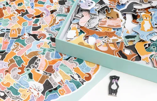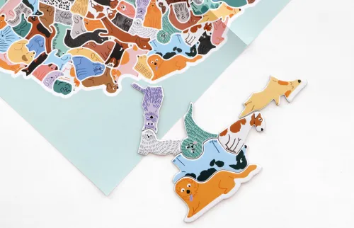 Jeder weiß, was passiert, wenn viele Hunde gut gelaunt aufeinandertreffen: es gibt ein riesiges Durcheinander! Hier ist es nicht anders – in diesem raffinierten Knäuel-Puzzle gibt es keine normalen Teile: Alle sehen aus wie Hunde! Und es gibt 299 von ihnen! Plus eine Katze. Damit sie alle zusammenbleiben, gibt es einen praktischen Rahmen: Bauen Sie diesen zuerst, das wird Ihre Hunde halbwegs bändigen.