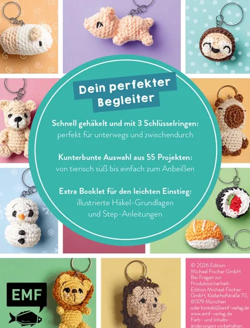 Ob Frosch, Schaf, Seepferdchen, Elefant, Eis am Stiel oder Coffee to go: Mit diesem Set hast du immer die passende Inspiration griffbereit. Einfach Lieblingsprojekt, Booklet und Häkelsachen einpacken und überall loslegen. Und schon baumeln deine neuen Lieblingsbegleiter an Schlüsselbund, Handtasche oder Rucksack!