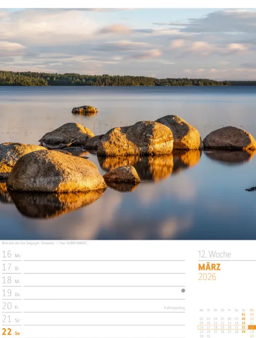 Norwegens Fjorde, Schwedens einsame Seen, Finnlands endlose Wälder, Islands spektakuläre Naturphänomene oder Dänemarks Strände – jedes der Länder Skandinaviens hat seinen eigenen Reiz und seine kulturellen oder landschaftlichen Besonderheiten. Was sie gemeinsam haben, ist eine beeindruckend ursprüngliche Natur, die mit ihrer Weite, Ruhe und den besonderen Lichtstimmungen des Nordens einen unnachahmlichen Zauber versprüht. Übersichtliches Kalendarium mit Platz für Ihre Einträge und dazu jede Woche neuer Rätselspaß: Kreuzworträtsel und Sudokus auf allen Rückseiten.