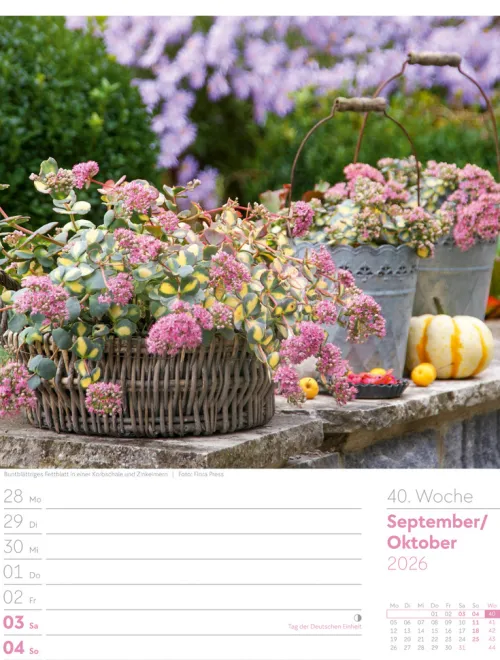 - Wochenkalender mit 53 opulenten Gartenbildern, abgestimmt auf die Jahreszeiten