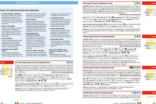 Rund 2. 900 Campingplätze in 18 Ländern werden vorgestellt und mit der zuverlässigen Bewertung der Plätze mit bis zu 5 Sternen klassifiziert. Mit rund 2500 Rabatt-Angeboten spart die ADAC Campcard im Urlaub bares Geld. Mit zahlreichen touristischen Informationen zu jedem Land und vielen Regionen, bewährt übersichtlich die Darstellung aller Plätze auf der großformatigen Planungskarte: So ist der Campingplatz für die nächste Nacht schnell gefunden. In Zusammenarbeit mit PiNCAMP, dem Campingportal des ADAC.