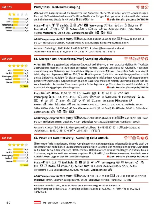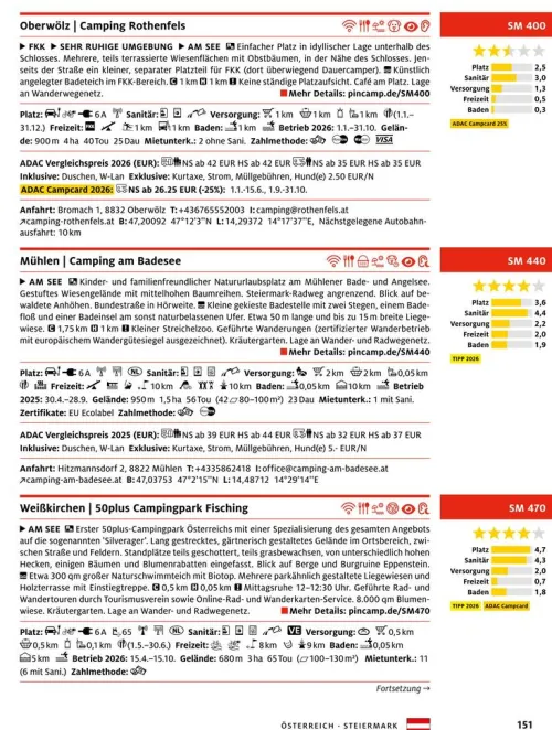 Rund 2. 900 Campingplätze in 18 Ländern werden vorgestellt und mit der zuverlässigen Bewertung der Plätze mit bis zu 5 Sternen klassifiziert. Mit rund 3. 000 Rabatt-Angeboten spart die ADAC Campcard im Urlaub bares Geld – und jedem Buch liegt ein Gutschein für ein Jahr kostenlosen Zugang zur PiNCAMP APP plus bei. Mit zahlreichen touristischen Informationen zu jedem Land und vielen Regionen, bewährt übersichtlich die Darstellung aller Plätze auf der großformatigen Planungskarte: So ist der Campingplatz für die nächste Nacht schnell gefunden. In Zusammenarbeit mit PiNCAMP, dem Campingportal des ADAC.