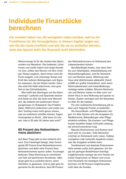 Ein praxisorientierter Leitfaden, der in fünf einfachen Schritten mit konkreten Checklisten und Formularen durch den Aufbau einer individuellen Altersvorsorge führt.