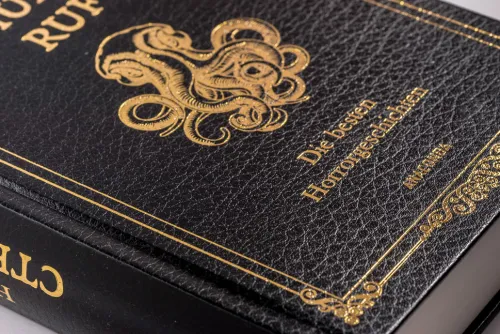 Lemurische Wesen der Unterwelt mit blutigen Riten, leichenverzehrende Dämonen, Monstren, die »in unbestimmten Bereichen und Dimensionen außerhalb unseres stofflichen Universums leben« – sie bevölkern die so verstiegene wie faszinierende Welt des H. P. Lovecraft. Unaufhaltsam schürt der frühe Meister der Horrorliteratur die Angst vor dem Unbekannten und Bedrohlichen und löst bei seinen Lesern blankes Entsetzen und wohlige Schauer aus. In dieser in Cabra-Leder gebundenen Sammlung mit Goldprägung sind einige seiner berühmtesten Erzählungen versammelt: »Cthulhus Ruf«, »Das Grauen von Dunwich«, »Die Farbe aus dem All«, »Das Ding auf der Schwelle« und viele mehr.