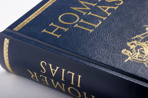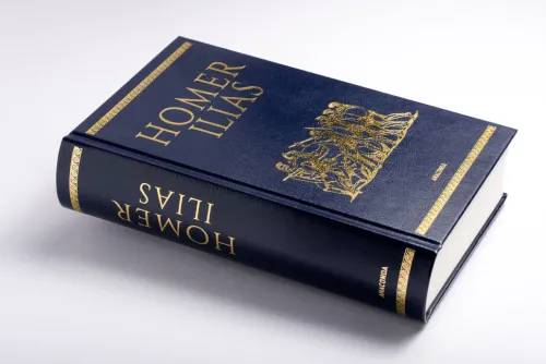 Homers Epos Ilias erzählt in 24 Kapiteln (Gesängen) die zehnjährige Eroberungsgeschichte Trojas und beruht auf Mythen und Erzählungen um den Trojanischen Krieg. Die »Ilias« ist das älteste nahezu vollständig erhaltene Zeugnis der europäischen Literatur. Sie entstand im 8. Jahrhundert v. Chr. in Griechenland und schildert in 24 Gesängen die zehnjährige Eroberungsgeschichte Trojas. Die unübertroffene Erzählkunst Homers bescherte dieser Dichtung eine überwältigende Wirkung und macht die »Ilias« zu einem bis heute lebendigen Meisterwerk. »Singe den Zorn, o Göttin, des Peleiaden Achilleus«, lautet der berühmte erste Vers, hier eingebunden in feinem Cabra-Leder mit Goldprägung.