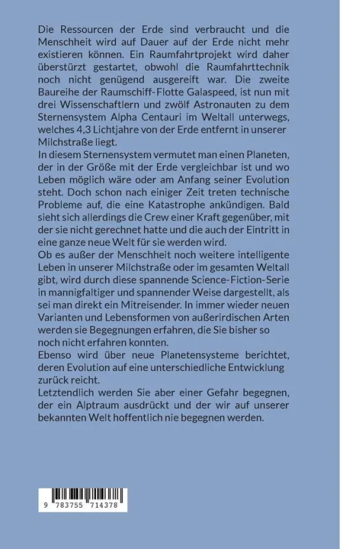 Ob es außer der Menschheit noch weitere intelligente Leben in unserer Milchstraße oder im gesamten Weltall gibt, wird durch diese spannende Science-Fiction-Serie in mannigfaltiger und spannender Weise dargestellt, als sei man direkt ein Mitreisender. In immer wieder neuen Varianten und Lebensformen von außerirdischen Arten werden sie Begegnungen erfahren, die Sie bisher so noch nicht erfahren konnten.
