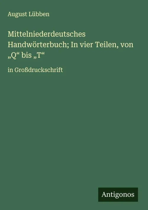 Antigonos Verlag Großdruck*Mittelniederdeutsches Handwörterbuch; In vier Teilen, von „Q“ bis „T“
