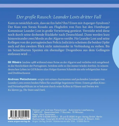 Andreas Pietschmann sorgte mit seinen charmanten und packenden Lesungen von Leander Losts ersten beiden Fällen für Tausende begeisterte Hörer. Einem großen Kino- und Fernsehpublikum ist er bekannt durch seine Rollen in “ Sonnenallee“ , “ The Team“ u. a.