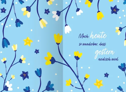 Kleiner Kalender mit positiven Denkanstößen, vereint Eigenschaften von praktischem Timer, schönem Geschenkbuch und persönlichem Tagebuch - Buchkalender voller Lebensfreude, auch für die Handtasche: