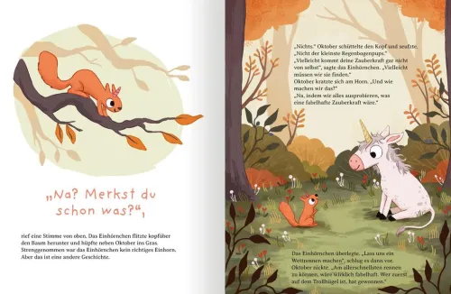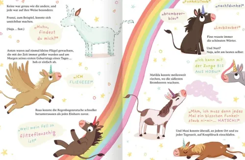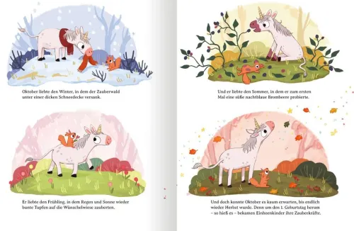 An einem goldenen Oktobertag wird ein kleines Einhorn geboren. Kurz vor seinem 1. Geburtstag wartet es gespannt darauf, seine magischen Kräfte zu entdecken – doch es passiert . . . nichts. Es macht sich auf die Suche und erkennt mit Hilfe eines frechen Einhörnchens, dass es die größte Zauberkraft längst in sich trägt: Seine Freundlichkeit! Eine magische Geschichte, die Kinder stärkt und zeigt: Jeder trägt etwas Besonderes in sich.