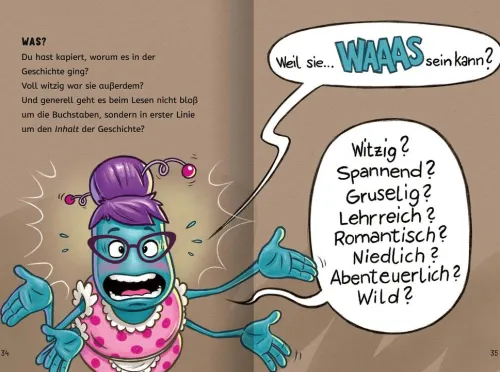 Doch je mehr Gründe die Spinnendame aufführt, desto lustiger und aberwitziger werden ihre Beispiele. Vielleicht sind Bücher ja doch ganz unterhaltsam . . . ?