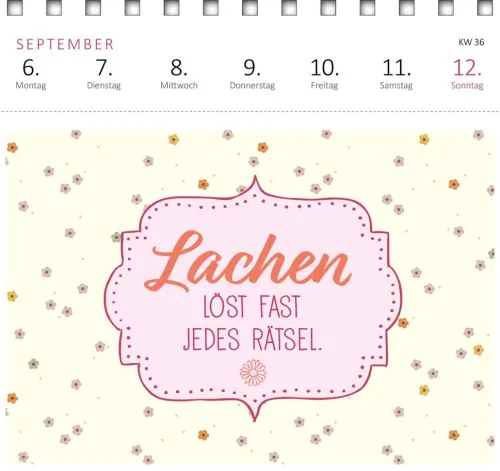 Ein tolles Geschenk für alle, die glücklicher leben möchten, Inspiration zum Glücklichsein und positive Affirmationen für ihren Alltag suchen. Der Kalender mit Postkarten ist eine Kraftquelle für die Seele – jedes Mal aufs Neue zaubert dieser Wochenkalender 2027 mit seinen schönen Sprüchen, Zitaten und Affirmationen ein Lächeln ins Gesicht. Mit dem praktischen Wochenkalendarium behält man stets den Überblick, egal ob im Büro, Homeoffice oder zu Hause. Die Postkarten mit stimmungsvollen Motiven lassen sich an der Perforation heraustrennen und können so an liebe Menschen verschickt werden.