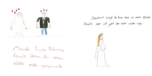 Unter der Anleitung des Grundschullehrers Jan Kuhl – der hauptberufliche Pädagoge hat bereits zahlreiche Geschenkbücher bei arsEdition veröffentlicht – ist ein schelmisch-heiteres Buch über den schönsten Tag im Leben entstanden. In „Hochzeit machen ist sooo schön“ erzählen und malen 24 Schulkinder ihre Gedanken zum Thema Heiraten und Ehe. Auch über die Tücken der Ehe wissen die Kinder Bescheid – ja, es gibt wirklich viel zu bedenken . . .