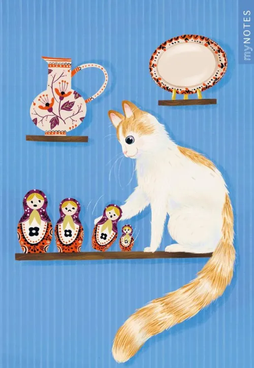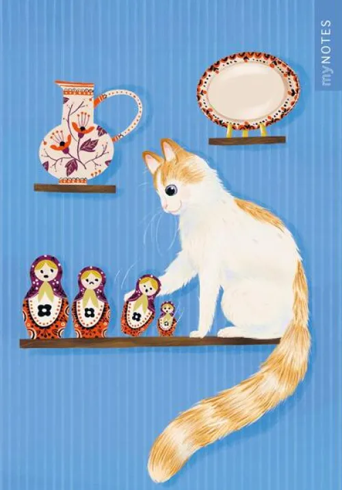 - Zuckersüßes Katzenmotiv: Das liebevoll illustrierte Cover mit frechem Stubentiger im Regal auf leuchtend blauem Hintergrund zaubert nicht nur Katzenfans ein Lächeln ins Gesicht und ist ein echter Hingucker auf deinem Schreibtisch