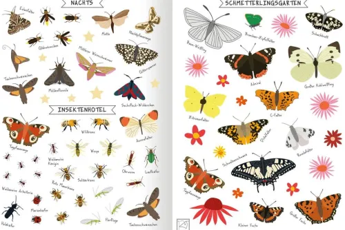 - Lerneffekt: Egal ob Schmetterlinge, Bienen oder Käfer – hier ist für jeden was dabei. Jedes Tier ist auf dem Stickerbogen benannt – ein toller Lerneffekt!