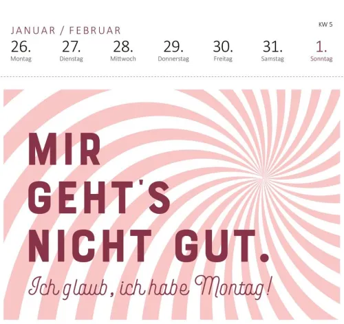Wochenkalendarium für 2026 mit Infos zu Feier- und Gedenktagen - Schönes Geschenk mit Augenzwinkern: