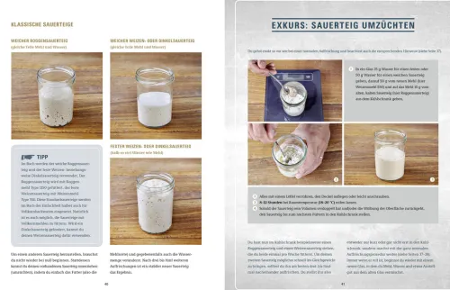 Der geniale Weg zu perfekten SauerteigbrotenDas Plötz-Prinzip für Hefebrote war und ist ein erfolgreicher Bestseller. Lutz Geißler legt nun mit Sauerteigbroten für Einsteiger nach. Er hat dafür spezielle Tricks und äußerst präzise Rezepte entwickelt, die fehlendes Equipment wie Verdampfung im Ofen und Gärschränke, die sonst nur Bäcker haben, komplett überflüssig machen. Ein normaler Ofen und handelsübliches Mehl genügen. Nicht einmal eine Knetmaschine ist für ein perfektes Backergebnis notwendig. Lutz Geißler stellt die traditionelle Sauerteigbäckerei auf den Kopf, verwendet nur kleinste Mengen an Sauerteig und gibt den Teigen mindestens 24 Stunden Zeit zum Reifen. Innerhalb eines für den Alltag äußerst praktischen Zeitfensters von 12 und 24 Stunden werden alle Arbeitsschritte in wenigen Minuten erledigt. Besonderer Geschmack und höchste Bekömmlichkeit sind die Eigenschaften der 60 Klassiker wie Roggenbrote, Schusterjungen, Schrotbrot oder Pumpernickel. Darüber hinaus bietet das Buch viele Rezepte aus Weizen und Dinkel, etwa für Baguettes, Ciabatta oder Frühstücksbrötchen. Auch Süßes wie Milchbrötchen, Kuchen, Brioche und Franzbrötchen lässt sich so sicher mit Sauerteig backen. Mit präzisen Schritt-für-Schritt-Anleitungen gelingt alles wie von selbst. Ein umfassender Grundlagenteil erklärt Hintergründe und gibt praktische Tipps, um auf die natürlichste Art, die es gibt, Brot zu backen.