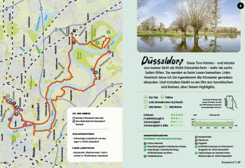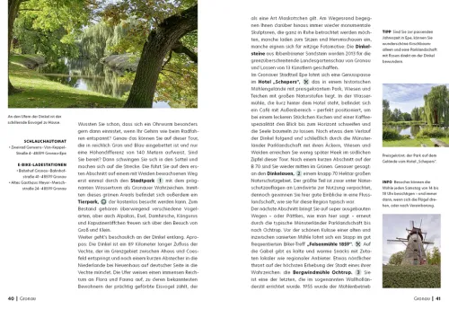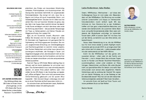 Die Entscheidung für die eine oder andere Tour erleichtern Informationen zu Streckenverlauf, Höhenprofil und Familientauglichkeit. Zum Planen der Fahrradtour laden ausführliche Beschreibungen von Sehenswertem sowie Geheimtipps für einzigartige Ausblicke und feine Genussmomente ein. Als praktisches Extra vereinfacht ein QR-Code mit hinterlegten GPS-Daten das Nachradeln für den Tagesausflug. Dann heißt es nur noch: Ab aufs Rad genießen Sie die schönsten Routen im Süden und Osten von NRW!