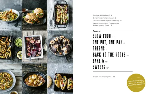 Vegan at its bestAnne-Katrin Weber hat in ihrer prämierten „Deftig vegetarisch“- Reihe unzählige Fans mit gut machbaren Rezepten begeistert, die alltagstauglich, aber gleichzeitig auch raffiniert sind und am Tisch überraschen. Wir im Verlag waren gespannt, was herauskommt, wenn Anne-Katrin Weber ihren Fokus jetzt auf die vegane Küche legt. Das Ergebnis ist so köstlich, dass wir hier einfach nur noch Rezepte aufzählen wollen: ofengeröstete Petersilienwurzeln mit Granatapfel und Haselnüssen, Spinat mit würzig gerösteten Cashews, Rosinen und Mandelmus, Maronensüppchen mit knusprigen Croûtons und Frühlingszwiebeln, goldbraun gebackene Rosmarinkartoffeln mit Zaziki und Dicke-Bohnen-Dip, knusprige Blumenkohlsteaks mit zitroniger Kapernsalsa, ofengebackene grüne Erbsen-Falafeln mit Chipotle-Mayonnaise, Kichererbsen-Pizzette mit Kürbis, Haselnüssen und Majoran, Buchweizenblini mit Ofen-Radieschen und Miso-Joghurt-Dip, Rote-Bete-Gnocchi mit gebratenem Sprossenbrokkoli und Macadamias, Pitabrote mit Röstgemüse und Hummus, rustikaler Linsen-Pie mit Selleriepüree, goldgelbes Safran-Biryani mit gerösteten Zwiebeln und Gurken-Raita, Brotsalat mit halb getrockneten Tomaten, Artischocken und Pinienkernen, Pulled-Jackfruit-Burger mit karamellisierten Rotweinzwiebeln, geschmorte Wirsingröllchen mit Couscous-Walnuss- Füllung. Natürlich gibt es aber auch beliebte vegane Klassiker wie Schwarze-Bohnen-Chili mit Süßkartoffeln, Quinoa und Schokolade oder Kartoffelknödel mit Pilzragout. Für Veganer, für Vegetarier, für alle Mischköstler und alle Neugierigen in der Küche eine besondere Empfehlung unseres kochbegeisterten Verlagsteams! Frisch, würzig, saftig und dabei gesund: Vegane Rezepte zum Niederknien! Mit einem Vorwort von Bestseller-Autor Niko Rittenau