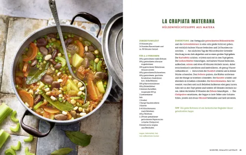 Domenico Gentile, mehrfach preisgekrönter Kochbuchautor, ist ein wahrer Meister darin, alte Originalrezepte der traditionellen italienischen Küche wiederzuentdecken. Dafür reist er jedes Jahr quer durch Italien, um direkt mit den Familien vor Ort die seit Generationen überlieferten Gerichte gemeinsam nachzukochen und sie für seine Buchprojekte festzuhalten. In La cucina vegetariana tradizionale werden auf diese Weise viele berühmte vegetarische Rezepte Italiens zum ersten Mal in ihrer unverfälschten Machart in einem Buch präsentiert.
