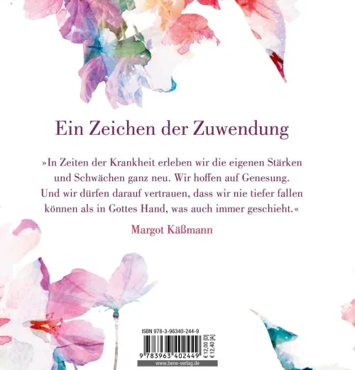 Mit diesem hochwertig ausgestatteten Band, der aufbauende Worte von Margot Käßmann mit stimmungsvollen Fotos verbindet, machen Sie einem lieben Menschen, der erkrankt ist, ein bleibendes und sinnstiftendes Geschenk. Im Gegensatz zu Blumen wird es niemals verblühen, sondern kann immer wieder zur Hand genommen werden, wenn sich die beschenkte Person nach Ermutigung sehnt.