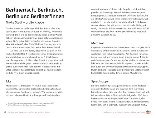 Vom Alex bis janz weit draußen: Wer verstehen will, wie Berlinerinnen und Berliner ticken, muss verstehen, wie sie sprechen. Lea Streisand zeigt in diesem Nachschlagwerk, dass die Berliner Schnauze weit mehr ist als nur eine regionale Färbung der Sprache – sie ist Ausdruck von Identität, Geschichte und Lebensart. Mit einer Mischung aus Sprachgeschichte, persönlichen Anekdoten und linguistischen Erklärungen führt sie durch die faszinierende Welt des Berlinischen.