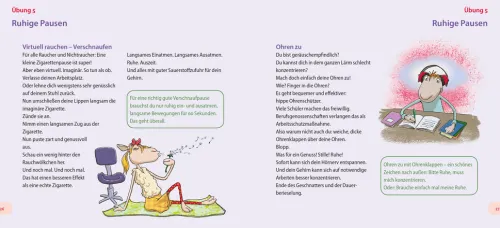 Claudia Croos-Müller zeigt in ihrem neuesten Überlebensbuch, wie sich belastende Situationen im Job und am Arbeitsplatz auf die psychomentale Gesundheit auswirken und wie Körperübungen dabei hilfreiche Soforthilfe leisten. Sie präsentiert dazu viele einfache Übungen, die in kürzester Zeit positiv auf das vegetative Nervensystem einwirken und schnell positive Gefühle hervorrufen. Übungen wie »Handraute«, »Grün sehen« und »Rückwärtsgang« – vorgestellt von den beliebten Gute-Laune-Schafen Oscar, Emily, Willy und Marie – stabilisieren in kürzester Zeit das Nervensystem, gönnen dem Hirn auch mal eine Pause und geben wieder Sicherheit, Zuversicht und neue Lebensfreude.