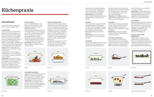 Zum Kochen findet man ein Fülle von Gerichten aus allen deutschen Regionen und aus den Küchen der Welt. Geordnet sind sie nach Rezeptgruppen – von Suppen und Vorspeisen über Fleisch, Fisch und Geflügel bis zu Desserts. Zum Backen verführen köstliche Rezepte für Kuchen, Torten, süßes und pikantes Gebäck sowie für die Weihnachtsbäckerei. Der Ratgeber-Teil informiert über Warenkunde und Küchenpraxis.
