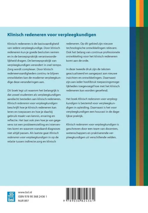 Het boek Klinisch redeneren voor verpleegkundigen is bestemd voor verpleegkundigen in opleiding. Daarnaast is het voor verpleegkundigen een houvast in de dagelijkse praktijk.