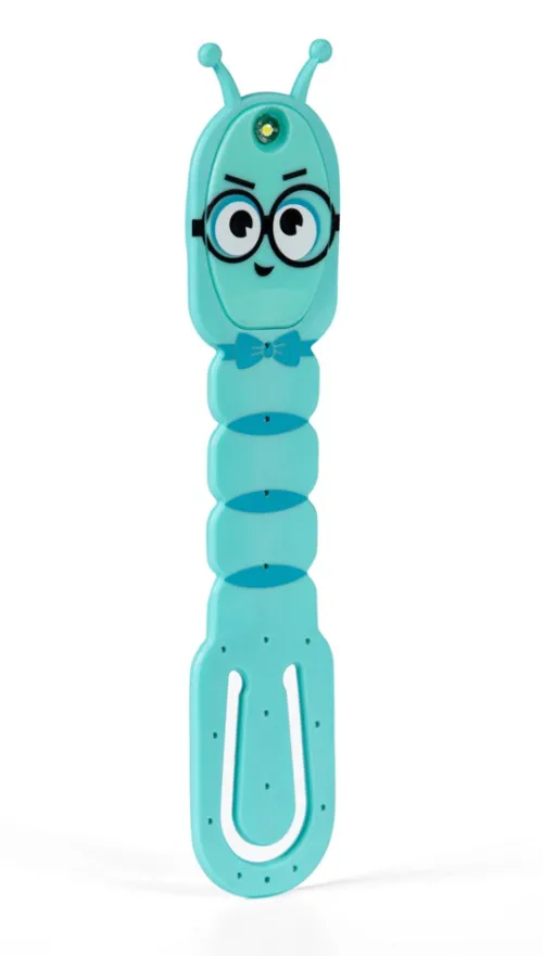 Bookchair Vertrieb Lesen & Geschichten*Flexilight Pals Leselicht (Bookworm) | blau | 2 in 1 Leselampe & Lesezeichen | LED Leselicht | Geschenk für Leser, Buchliebhaber | Deutsche Ausgabe