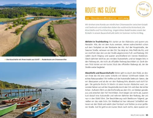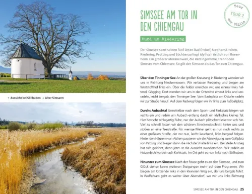 Egal ob durchs Sachranger Tal, auf dem Chiemsee-Rundweg, zwischen Simssee und Chiemsee oder am Tor zum Berchtesgadener Land – dieser Radtourenführer lotst Sie vorbei an sanft modellierten Hügeln und schimmernden Seen zu Chiemgauer Radelglück.