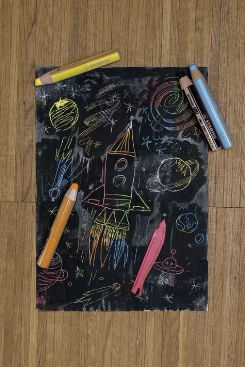 Hergestellt aus 100 % PEFC-zertifiziertem Holz. XXL-Mine: 1 STABILO woody = 8 Standard-Buntstifte. Perfekt für große Flächen und vielfältige Maltechniken. Wegen seiner dicken Form ideal für Kinderhände: der Stift ist gut zu