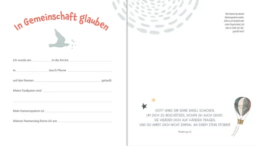 Von der Vorbereitungszeit bis zum großen Tag der Erstkommunion: Dieses wunderschöne Erinnerungsalbum mit reichlich Platz für Eintragungen bietet nicht nur den passenden Rahmen für schöne Schnappschüsse. Biblische Geschichten, Lieder, Gebete und kreative Bastelideen sorgen für langanhaltende Freude beim späteren Anschauen.