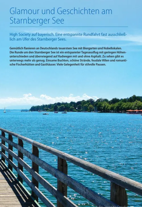 22 E-Bike Tages- und Mehrtagestouren im Alpenvorland, in Österreich, Südtirol, Venetien und Friaul mit Längen zwischen 20 und 459 km Diese 22 Radtouren sind absolute Genusserlebnisse. Wenn die Fahrt etwas länger wird, gibt es Empfehlungen mit stilvollen Übernachtungsmöglichkeiten von gemütlich und regional bis edel und luxuriös. Die Strecken verteilen sich auf Gegenden, die Radler ganz traditionell anziehen: das Alpenvorland in Bayern, die Alpen und Gegenden in Norditalien. Ob es durch den Chiemgau oder die bayerischen Voralpen geht mit romantischen Biergärten und zünftigen Brauereigasthöfen oder ob man entlang idyllischer Seen quer durch Kärnten radelt und sich von Buschenschanken, Bars oder Fischrestaurants verführen lässt oder ob man quer durch die Alpen ohne steile Pässe bis an die Adria fährt, in der schönsten Weinregion in Nordostitalien auf Entdeckungsreise ist und herrschaftliche Weingüter und Schinkenproduzenten mit Geheimtippstatus besucht: jede dieser Touren bietet so viele wohlschmeckende Verführungen entlang der Strecke, dass man am liebsten noche einige Tage länger bleiben will. Die Touren wurden so ausgewählt, dass sie sowohl Tagesausflüge als auch mehrtägige Reisen umfassen. Beim Streckenverlauf wurde darauf geachtet, dass möglichst keine stark befahrenen Wege und trotz E-Bike auch kein anstrengenden und langen Höhenunterschiede enthalten sind. Und das sind die Touren: Bayern/Baden-Württemberg 1 Auf dem Bodensee Radweg von Konstanz bis Lindau, 54 km 2 Rund um den Starnberger See, 56 km 3 Entlang der Isar von München bis Lenggries, 72 km 4 Rund um den Tegernsee mit gemütlichem Almausflug, 45 km 5 Quer durch das oberbayerische Voralpenland, 176 km 6 Durch die oberbayerische Provinz von Altötting nach Traunstein, 61 km 7 Kulinarisch rund um Wasserburg, 56 km Österreich 8 Auf dem Innradweg von Innsbruck nach Rosenheim, 120 km 9 von Salzburg zum Gourmettempel nach Golling, 30 km 10 Rund um Bad Ischl, 63 km 11 Rund um den Millstätter See, Ossiacher See und Wörthersee, 222 km 12 Auf dem Murradweg von St. Michael nach Graz, 226 km 13 Rundtour von Eisenstadt zu den Weinorten Rust und Mörbisch, 61 km 14 Alpe Adria Radweg von Kärnten nach Grado, 239 km Südtirol 15 vom Brenner bis Salurn, 133 km 16 vom Reschensee bis zu den Sextner Dolomiten, 219 km 17 Rundtour zwischen Bozen und Kaltern, 75 km Italien 18 Entlang des Avisio durch Val di Fiemme und Val di Fassa, 48 km 19 Valsugana Radweg vom Caldonazzosee bis Bassano del Grappa, 80 km 20 Rundtour um Gorizia über Cormons, 32 km 21 von Triest bis Venedig, 245 km 22 Rund um Ponte Arche, 54 km Zu jeder Tour gibt es eine Routenbeschreibung und Infos über das Sehens- ud Erlebenswerte rechts und links der Strecke. Eine Übersichtskarte sowie gpx-Daten, die kostenlos heruntergeladen werden können, helfen Ihnen, auf dem richtigen Weg zu bleiben.