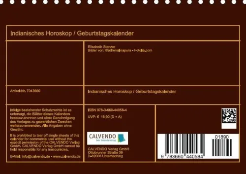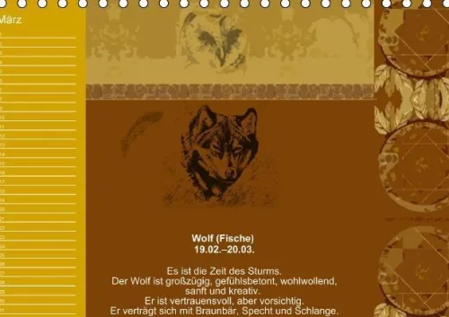 Ein schöner Geburtstagskalender, der das sehr interessante indianische Horoskop der Ureinwohner Nordamerikas zeigt.