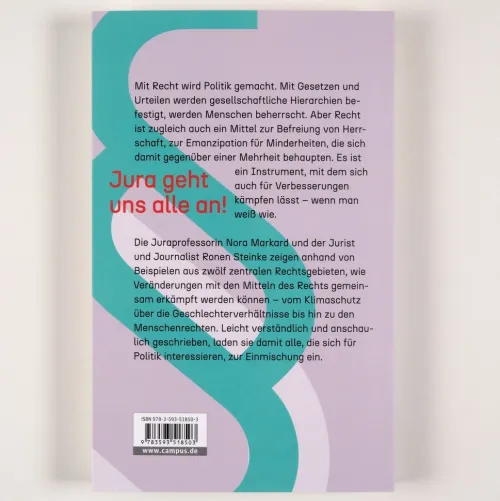 Die Juraprofessorin Nora Markard und der Jurist und Journalist Ronen Steinke zeigen anhand von Beispielen aus zwölf zentralen Rechtsgebieten, wie Veränderungen mit den Mitteln des Rechts gemeinsam erkämpft werden können vom Klimaschutz über die Geschlechterverhältnisse bis hin zu den Menschenrechten. Leicht verständlich und anschaulich geschrieben, laden sie damit alle, die sich für Politik interessieren, zur Einmischung ein. Denn Jura geht uns alle an.