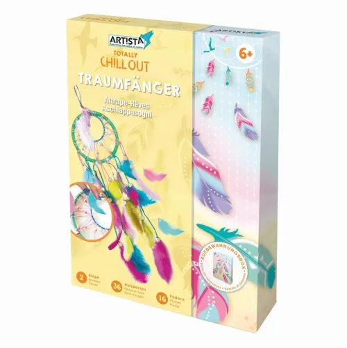 Kreatives All-in-One Bastelset für Kinder, um einen hübschen Traumfänger herzustellen. Ideales Geschenk, das jedes Kinderzimmer verschönert. Inklusive Anleitung mit Abbildungen. In attraktiver Aufbewahrungsschachtel. Inhalt: 36 Holzperlen, 1 großer und 1 kleiner Ring, 1 farbiger Wollfaden, 2 farbige Baumwollfäden, Kunstleder in 2 Farben, 16 farbige Federn. Inhalt: 36 Holzperlen, 1 großer und 1 kleiner Ring, 1 farbiger Wollfaden, 2 farbige Baumwollfäden, Kunstleder in 2 Farben, 16 farbige Federn.
