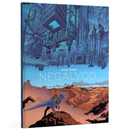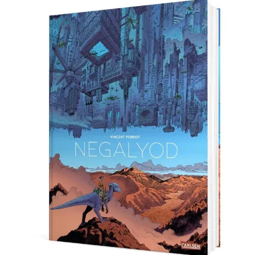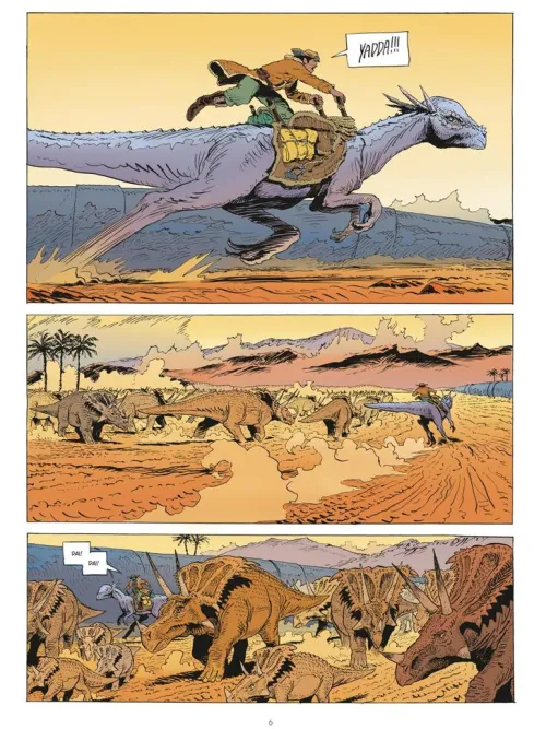 Vincent Perriot vereint im Stil Moebius‘ prähistorische Kreaturen, Science-Fiction-Urbanismus sowie Low-Tech-Schiffe. Dieser futuristische, dystopische Western präsentiert in großartig kolorierten Panels mit prächtigen Dekoren eine Geschichte über Widerstand aber auch über die Entdeckung des Selbst und des Anderen.