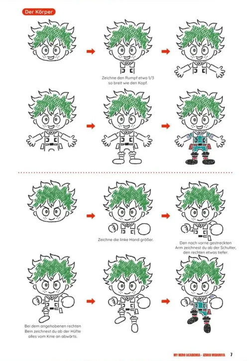 Mit über 800 Illustrationsanleitungen können selbst blutige Anfänger*innen kinderleicht die Helden aus »My Hero Academia« in feinster Kritzelform zeichnen!