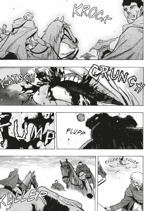 Team 10 des Aufklärungstrupps entdeckt inmitten widrigster Wetterbedingungen den »roten Stern«, den die Späher des voranreitenden Haupttrupps abgefeuert haben und der die Entdeckung eines Titanen signalisiert. Eilig reiten sie zu der Oase, die den südlichsten Punkt markiert, bis zu der die Menschheit bisher vorgedrungen ist. Kurz darauf erhält Kyukuro im Waldgebiet der Oase erneut die Chance, gegen den 10-M-Titanen »Ogre« zu kämpfen, der für den Tod seiner Eltern verantwortlich ist.